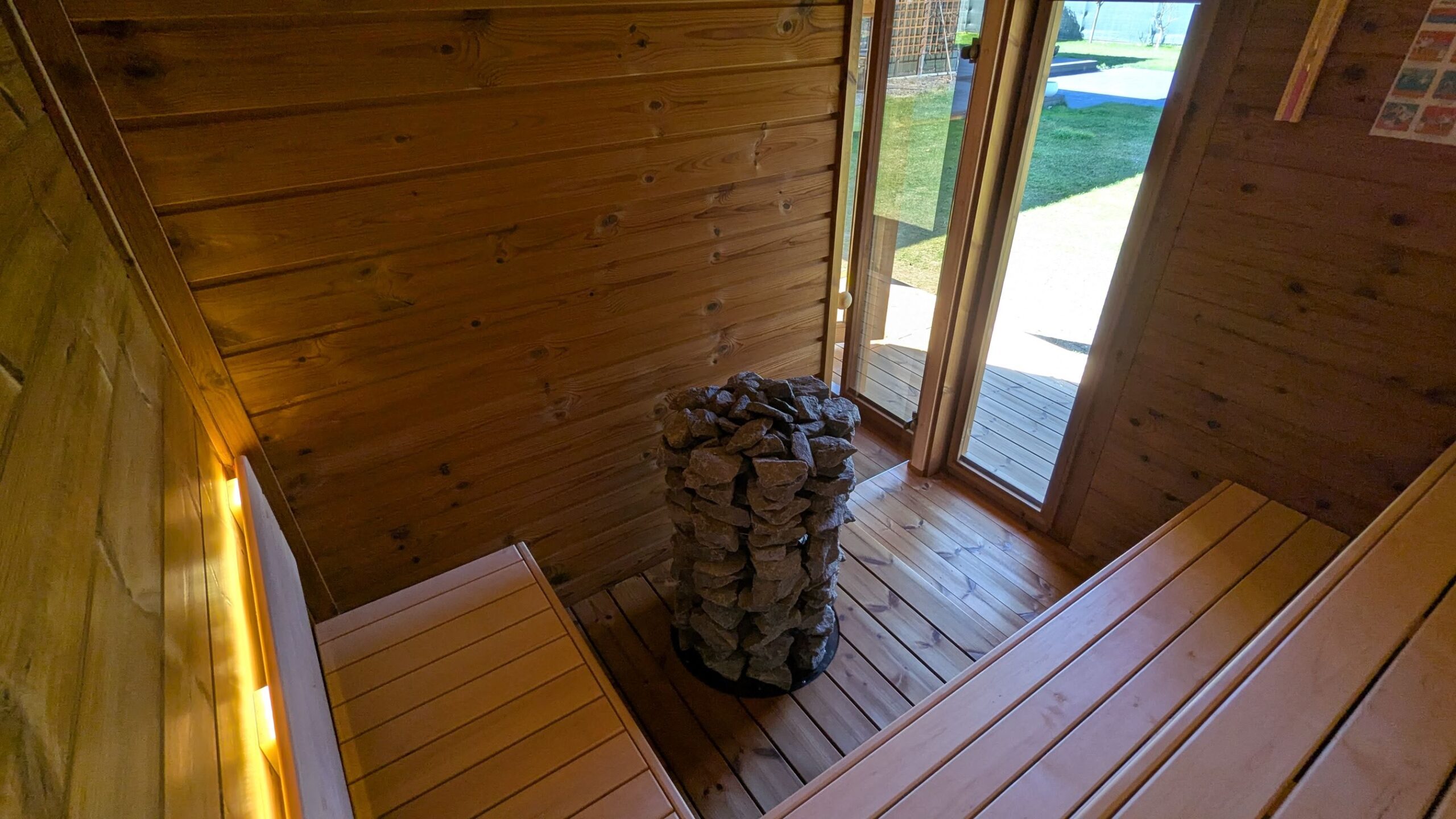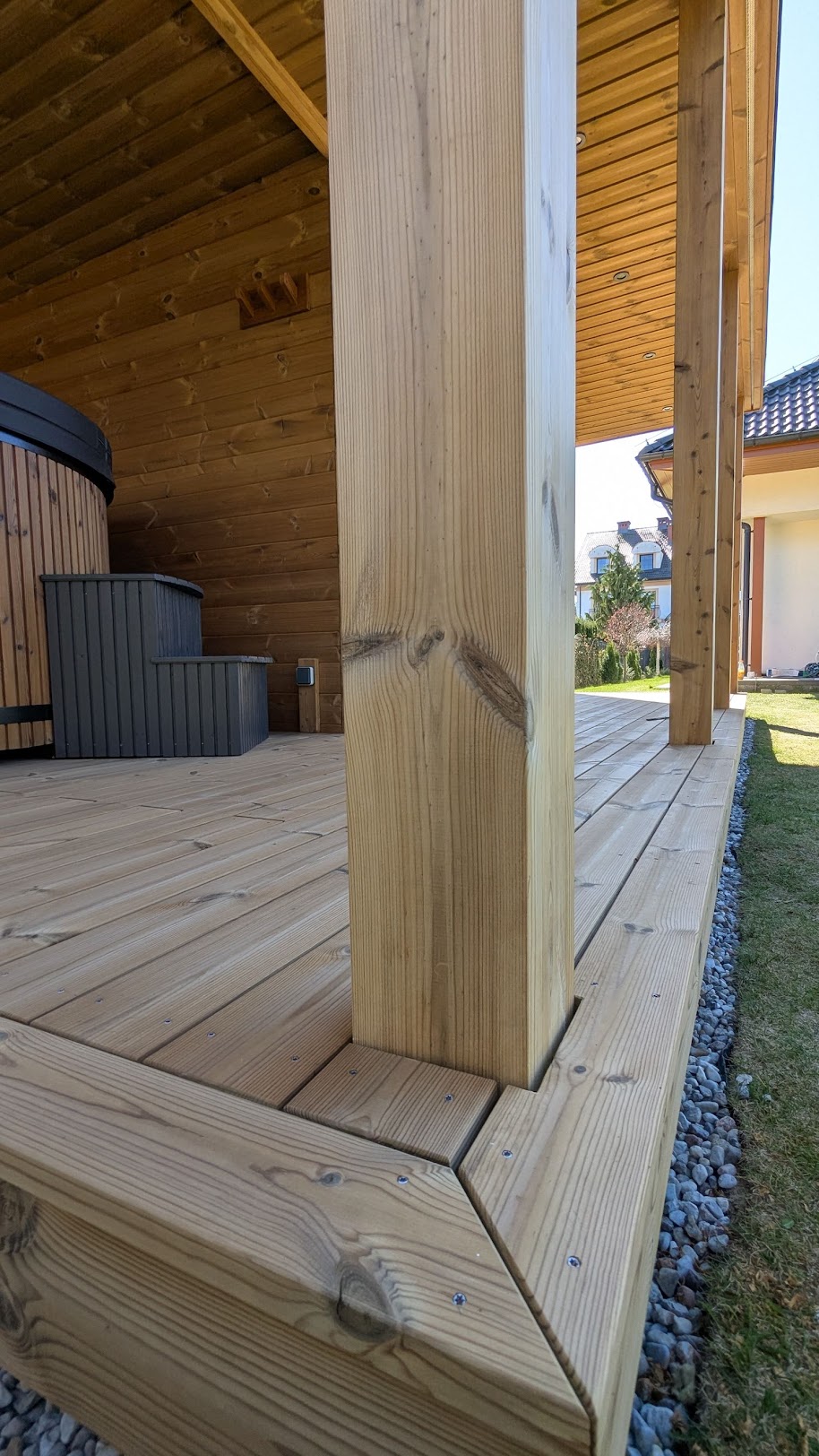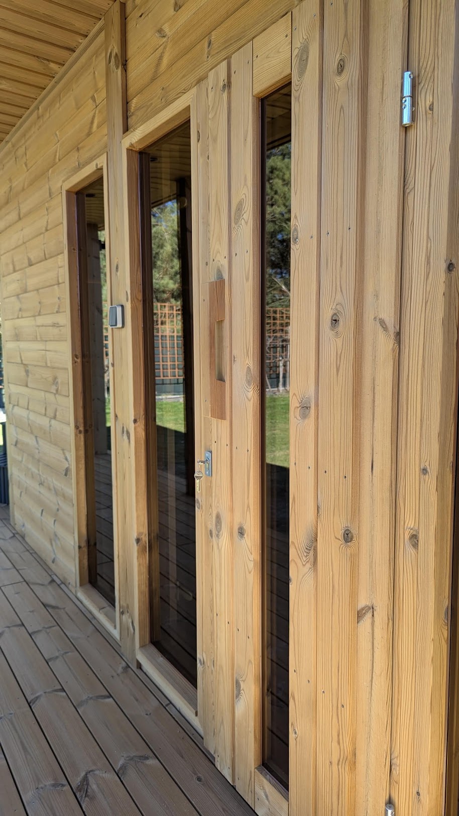 Projektując saunę, szczególną uwagę poświęciliśmy detalom wykończeniowym, które nadają całości elegancki i nowoczesny wygląd. Drewno zostało poddane odpowiedniej impregnacji, co zapewnia jego trwałość i odporność na działanie czynników atmosferycznych.